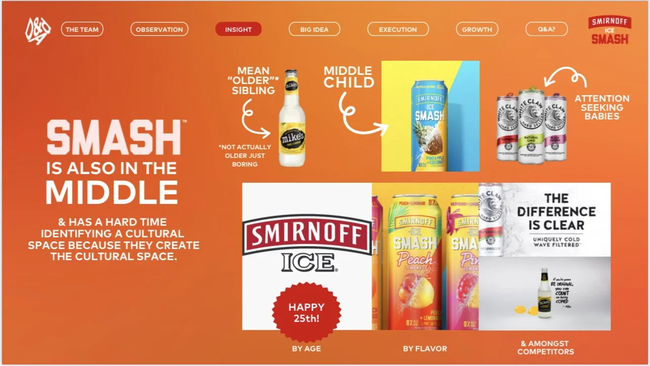 Gen-Z’s legal drinking crowd have found ways to resonate with the lifestyles of competitor brands, Mike’s Hard Lemonade and White Claw. Leaving Smirnoff Ice SMASH with the task of identifying it’s own cultural space that resonates authentically with both the brand and it’s audience.